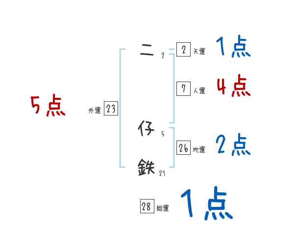 二仔鉄さんの画数の鑑定結果