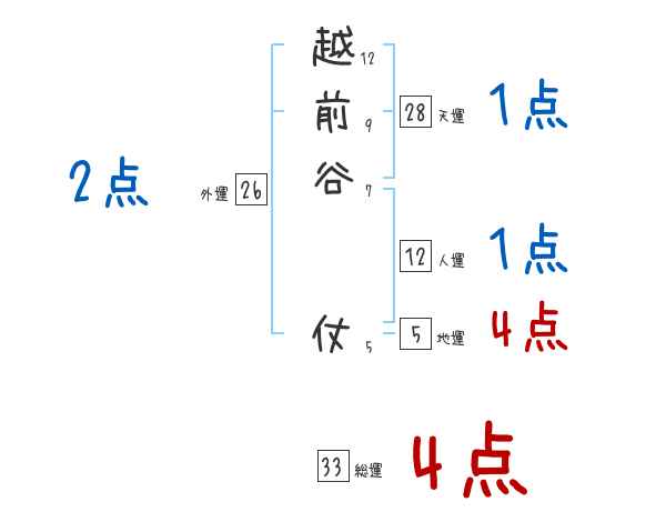 天運![]() | 越前谷仗さんの天運は28画の1つ星!家庭環境に注意。スポーツで活躍できる能力があるかも。 家系が持つ宿命的な運勢を表します。祖先から受け継いだ苗字ですので自分の力が及びません。家柄を象徴します。 |