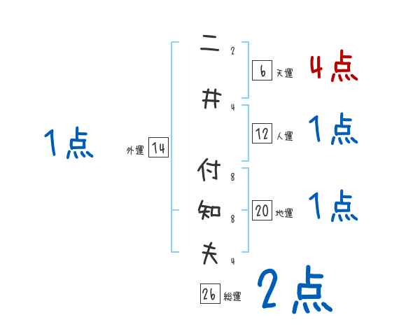 二井付知夫さんの画数の鑑定結果