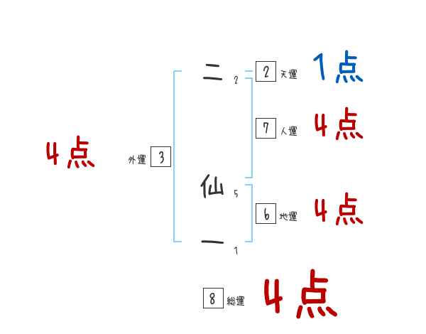 総運![]() | 二仙一さんの総運は8画の4つ星!勤勉家。根気強く努力し成功する。忍耐力がある。 あなたの人生を表す1番重要な運勢です。生涯を通じて影響する総合運となり、主に50歳以降の晩年期に影響を及ぼします。 |