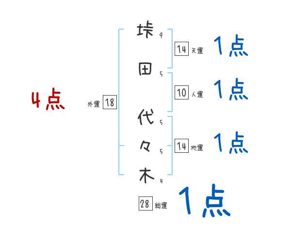 垰田代々木さんの画数の鑑定結果