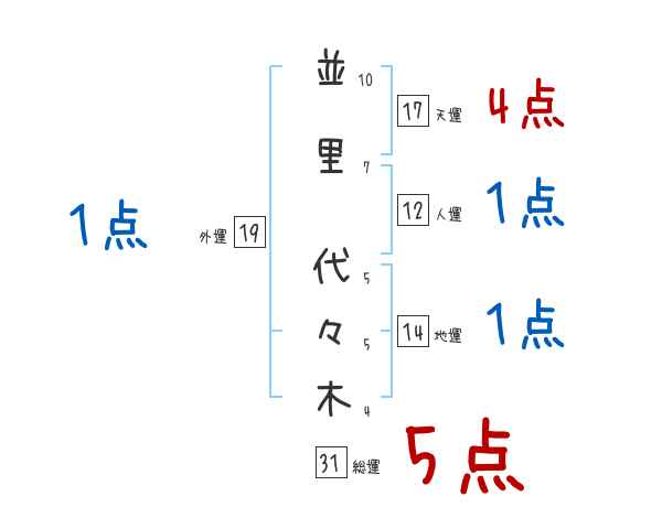 外運![]() | 並里代々木さんの外運は19画の1つ星!優れた才能を持ちますが、協調性が足りないことも。周りの人と協力する事を意識しましょう。 生活面を象徴する運勢です。外部から受ける影響力を表し、結婚運、家庭運や職場、環境への順応性を表します。 |