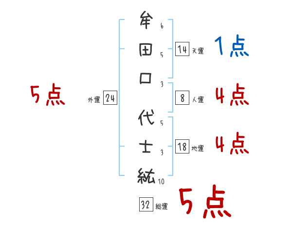 牟田口代士紘さんの画数の鑑定結果