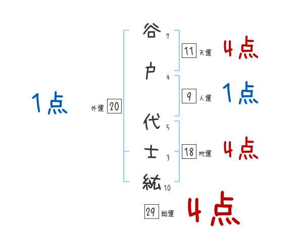 谷戸代士紘さんの画数の鑑定結果