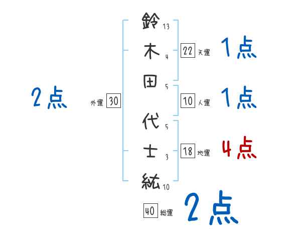 家系が持つ宿命的な運勢を表します。祖先から受け継いだ苗字ですので自分の力が及びません。家柄を象徴します。