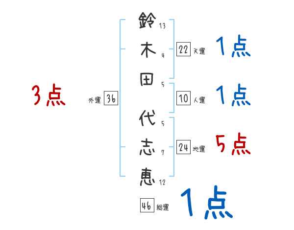 外運![]() | 鈴木田代志恵さんの外運は36画の3つ星!先見性が豊かです。多少神経質で苦労することも。 生活面を象徴する運勢です。外部から受ける影響力を表し、結婚運、家庭運や職場、環境への順応性を表します。 |