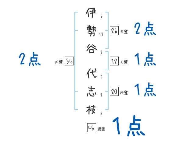 天運![]() | 伊勢谷代志枝さんの天運は26画の2つ星!波瀾万丈かも。信頼できる人を大事にしましょう。 家系が持つ宿命的な運勢を表します。祖先から受け継いだ苗字ですので自分の力が及びません。家柄を象徴します。 |