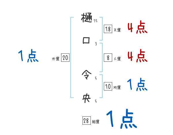 樋口令央さんの画数の鑑定結果
