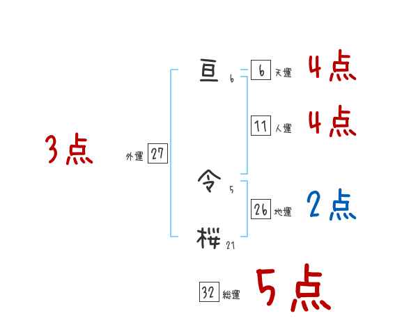 亘令桜さんの画数の鑑定結果