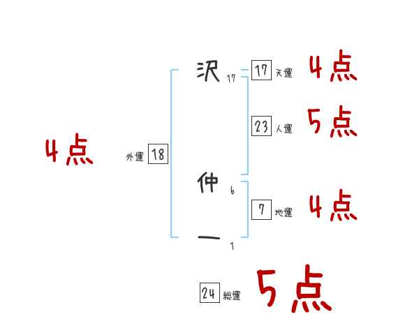 沢仲一さんの画数の鑑定結果