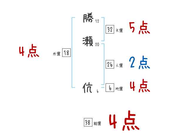 勝瀬伉さんの画数の鑑定結果