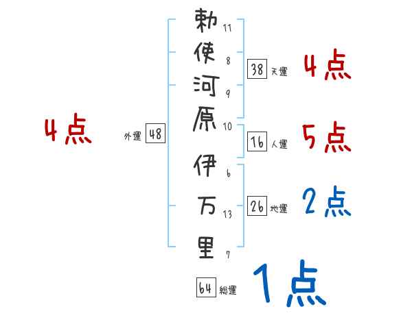 人運![]() | 勅使河原伊万里さんの人運は16画の5つ星!人望が厚く大きく発展する。逆転成功が見える。 性格や才能などを表す2番目に重要な運勢です。人間関係や協調性、社会的な成功に影響します。主に20歳から50歳ぐらいまでの中年期の運勢を表します。 |
