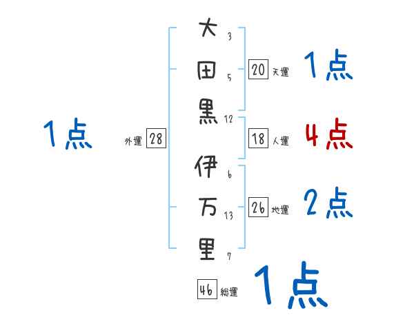 大田黒伊万里さんの画数の鑑定結果