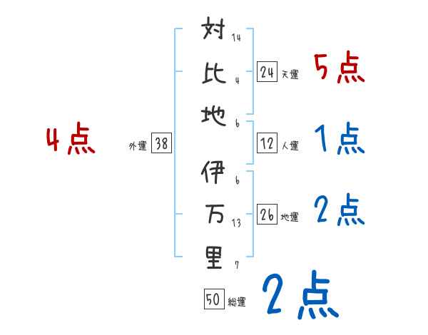 対比地伊万里さんの画数の鑑定結果