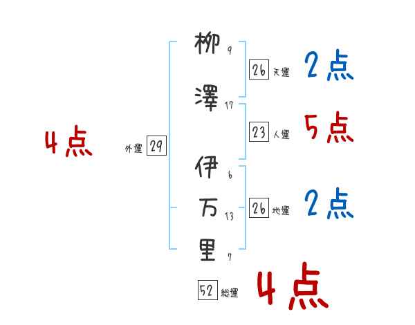 栁澤伊万里さんの画数の鑑定結果