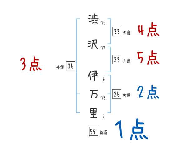 外運![]() | 渋沢伊万里さんの外運は36画の3つ星!先見性が豊かです。多少神経質で苦労することも。 生活面を象徴する運勢です。外部から受ける影響力を表し、結婚運、家庭運や職場、環境への順応性を表します。 |