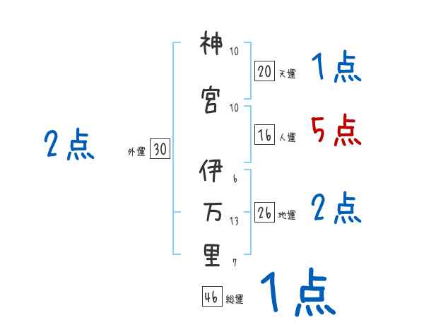 外運![]() | 神宮伊万里さんの外運は30画の2つ星!浮き沈みの激しさに注意しましょう。 生活面を象徴する運勢です。外部から受ける影響力を表し、結婚運、家庭運や職場、環境への順応性を表します。 |