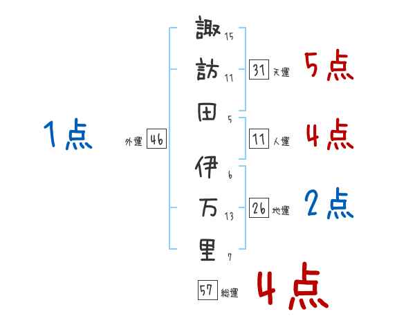 諏訪田伊万里さんの画数の鑑定結果