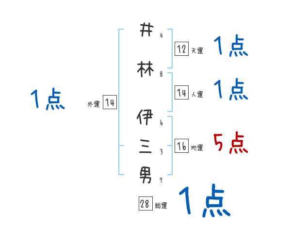 地運![]() | 井林伊三男さんの地運は16画の5つ星!人望が厚く大きく発展する。逆転成功が見える。 個性を表す基礎的な運勢です。性格形成や対人関係、行動力など家庭環境に影響されます。主に誕生してから20歳くらいまでの若年期の運勢を表します。 |