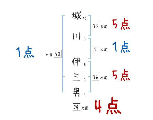 地運![]() | 城川伊三男さんの地運は16画の5つ星!人望が厚く大きく発展する。逆転成功が見える。 個性を表す基礎的な運勢です。性格形成や対人関係、行動力など家庭環境に影響されます。主に誕生してから20歳くらいまでの若年期の運勢を表します。 |