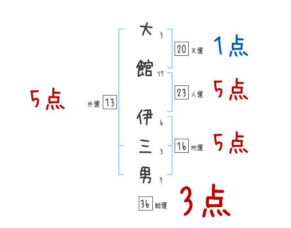 大館伊三男さんの画数の鑑定結果