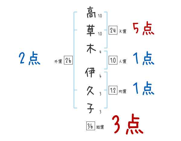 高草木伊久子さんの画数の鑑定結果