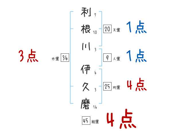 外運![]() | 利根川伊久磨さんの外運は36画の3つ星!先見性が豊かです。多少神経質で苦労することも。 生活面を象徴する運勢です。外部から受ける影響力を表し、結婚運、家庭運や職場、環境への順応性を表します。 |