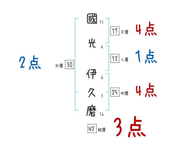 國光伊久磨さんの画数の鑑定結果