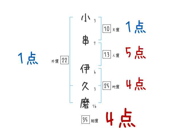 小串伊久磨さんの画数の鑑定結果