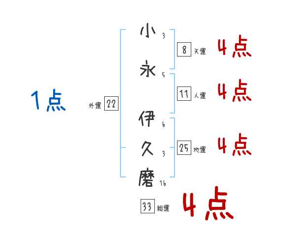 小永伊久磨さんの画数の鑑定結果