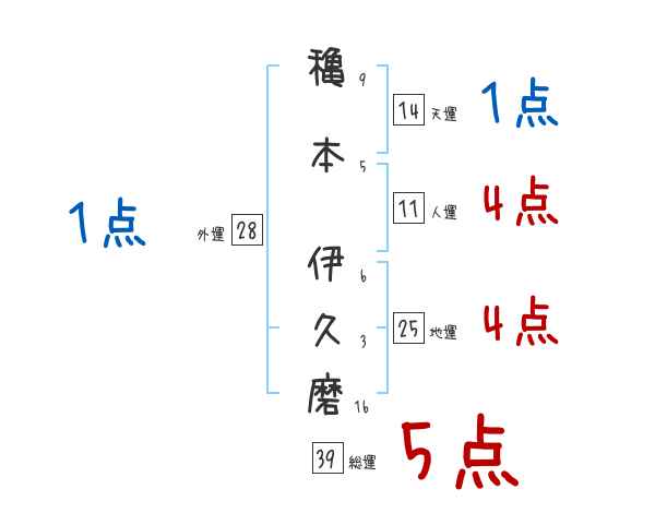 穐本伊久磨さんの画数の鑑定結果