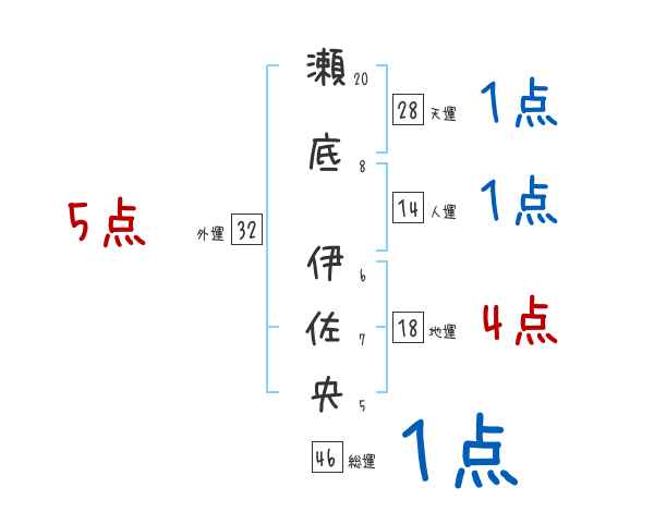 瀬底伊佐央さんの画数の鑑定結果