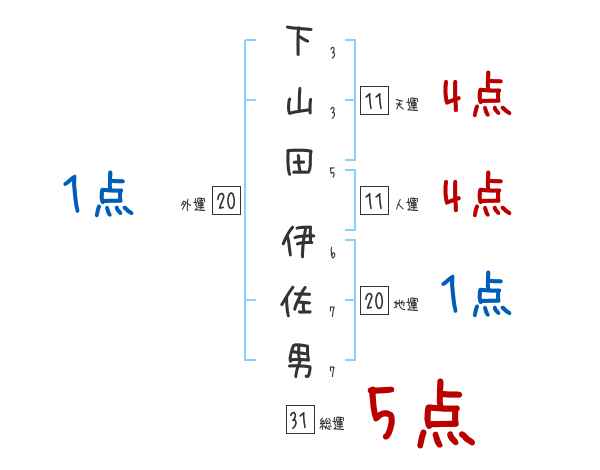 下山田伊佐男さんの画数の鑑定結果