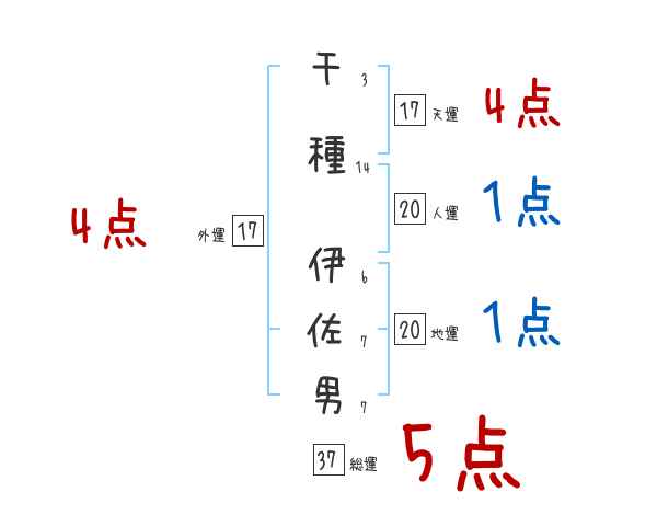 外運![]() | 千種伊佐男さんの外運は17画の4つ星!積極的な行動力。地位を気づき財産を手に入れる。純粋な心と直感力。 生活面を象徴する運勢です。外部から受ける影響力を表し、結婚運、家庭運や職場、環境への順応性を表します。 |