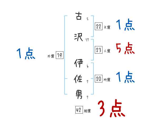 外運![]() | 古沢伊佐男さんの外運は19画の1つ星!優れた才能を持ちますが、協調性が足りないことも。周りの人と協力する事を意識しましょう。 生活面を象徴する運勢です。外部から受ける影響力を表し、結婚運、家庭運や職場、環境への順応性を表します。 |