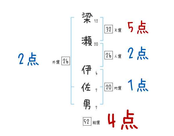 梁瀬伊佐男さんの画数の鑑定結果