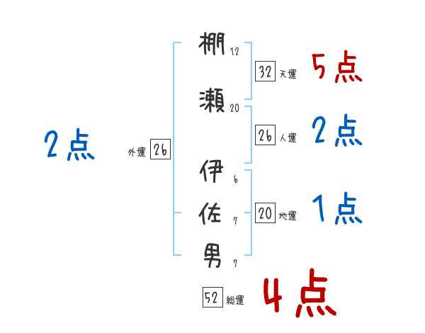 天運![]() | 棚瀬伊佐男さんの天運は32画の5つ星!柔軟性があり成功する。チャンスが多く金運が良い。 家系が持つ宿命的な運勢を表します。祖先から受け継いだ苗字ですので自分の力が及びません。家柄を象徴します。 |