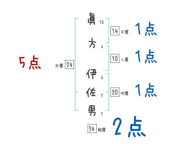 眞方伊佐男さんの画数の鑑定結果