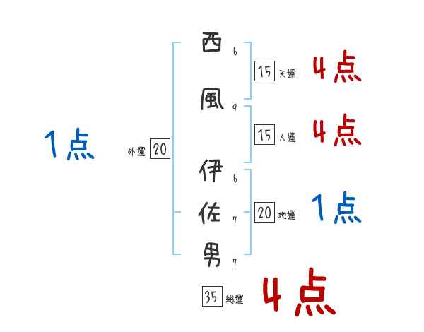 西風伊佐男さんの画数の鑑定結果