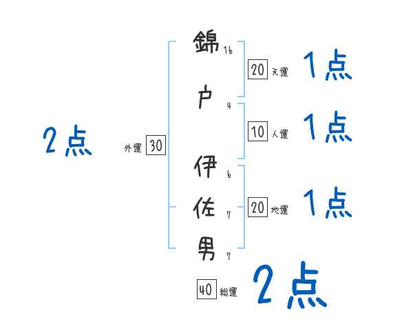 錦戸伊佐男さんの画数の鑑定結果