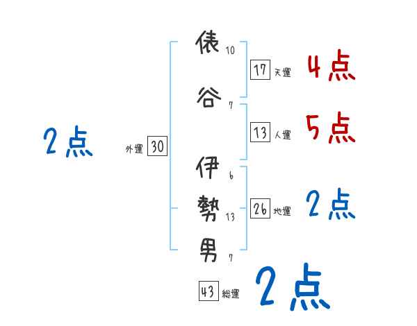 俵谷伊勢男さんの画数の鑑定結果