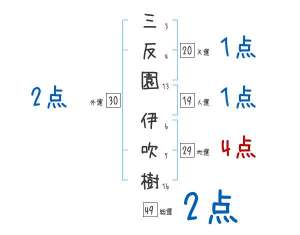三反園伊吹樹さんの画数の鑑定結果