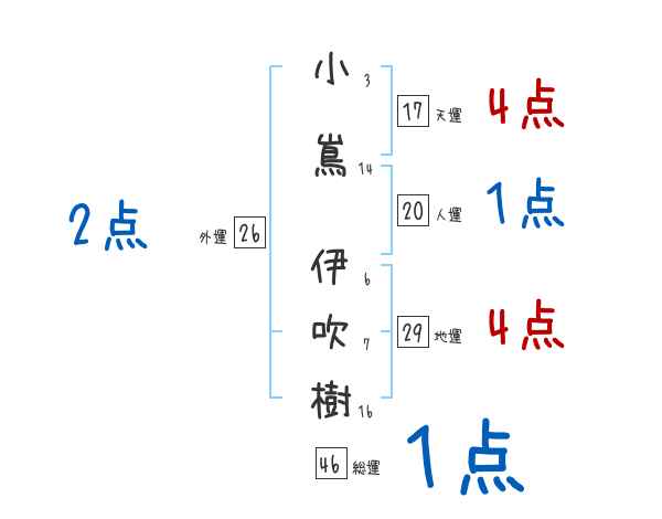 小嶌伊吹樹さんの画数の鑑定結果