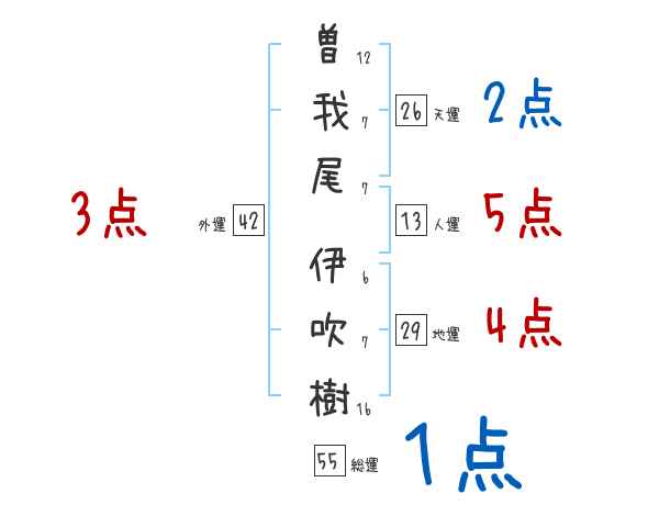 曽我尾伊吹樹さんの画数の鑑定結果
