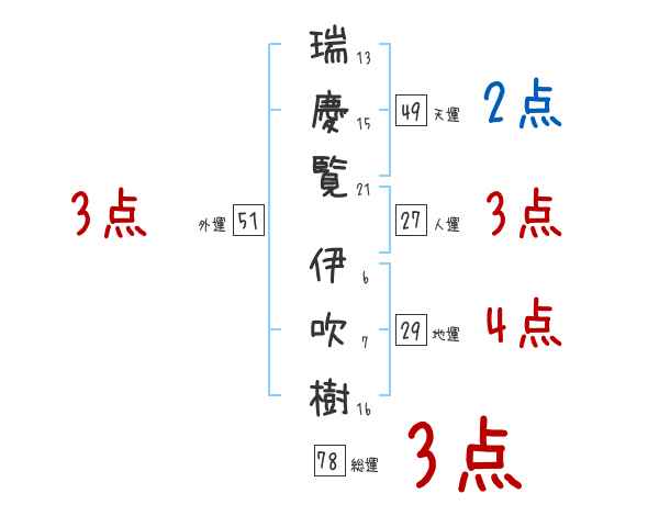 瑞慶覧伊吹樹さんの画数の鑑定結果