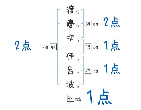 地運![]() | 渡慶次伊呂波さんの地運は22画の1つ星!努力することが苦手ないっぽう手先が器用。芸術性にも優れる。 個性を表す基礎的な運勢です。性格形成や対人関係、行動力など家庭環境に影響されます。主に誕生してから20歳くらいまでの若年期の運勢を表します。 |