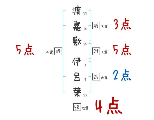 渡嘉敷伊呂葉さんの画数の鑑定結果