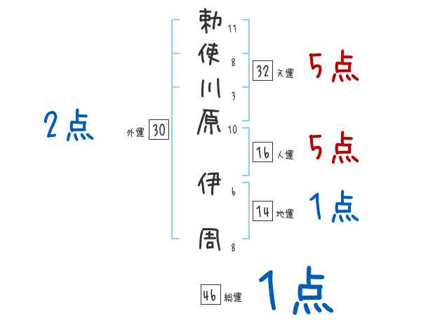 勅使川原伊周さんの画数の鑑定結果