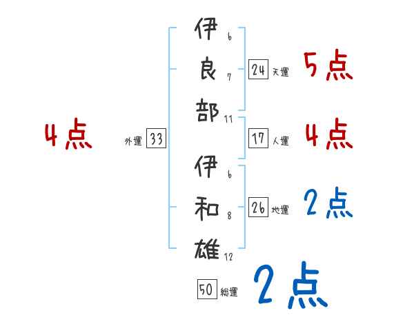 伊良部伊和雄さんの画数の鑑定結果