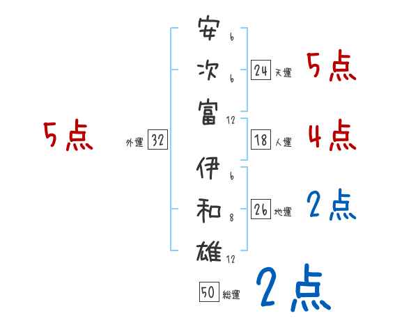 安次富伊和雄さんの画数の鑑定結果